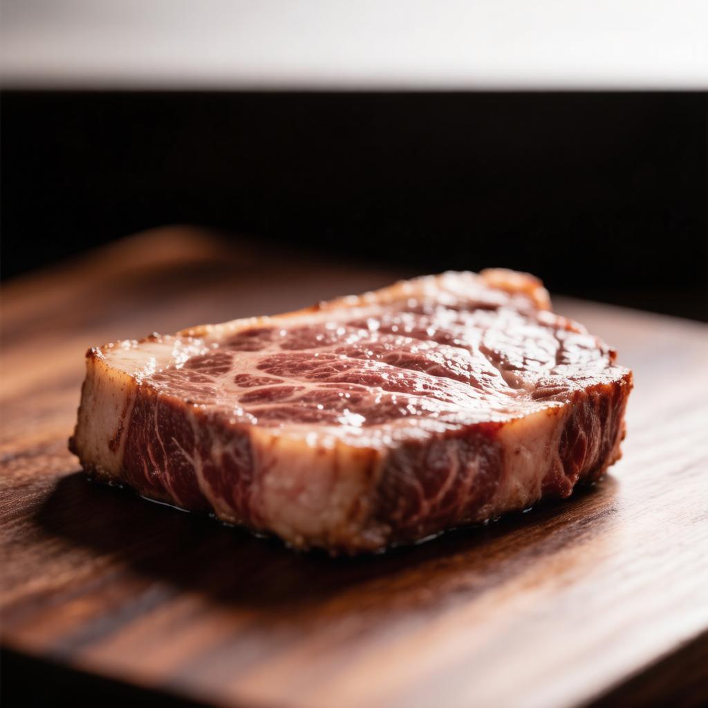 Стейк из шейной части. Сверху покрыт тонкой жировой прослойкой — она делает мясо нежным и сочным. Подойдёт для жарки или запекания в маринаде.